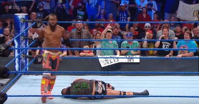 Before the match started, the Revival, sporting bandaged ribs, chastised the fans for cheering Kingston’s attack on them, and challenged them to a match for the tag team championship at Clash of Champions.