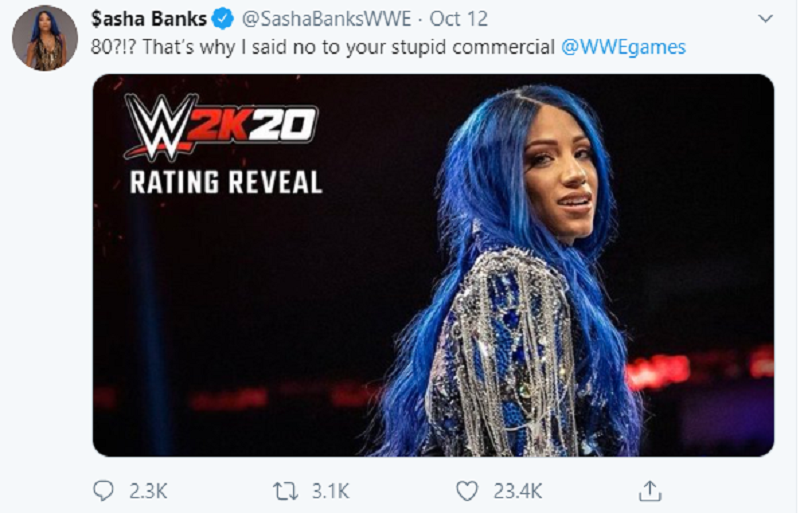 While no where as poignant as the HIAC finish, underrating Sasha Banks with an 80 when Becky Lynch is rated a 90 and Charlotte Flair is rated an 87 has ignited its own debate among fans and, most interestingly, Sasha Banks.