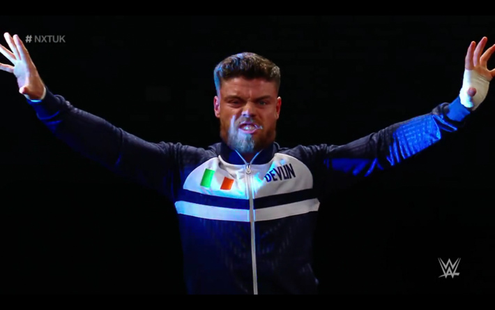 In this weeks main event, we see the giant from the Black Country, the near undefeatable Bomber Dave Mastiff, face off with The Irish Ace, Jordan Devlin. Devlin claimed he was the best wrestler in NXT UK, and Mastiff took umbredge with this. The match started fast with Devlin flying in with a forearm the second the bell rang, immediately starting to pick apart his bigger opponent. Mastiff enters this match with an unbelievable strength advantage, so Devlin has to rely on being clever and quick to topple this challenge. Devlin was able to regain momentum following being thrown around like a sack of potatoes by attacking the arm, an advantage he would press to ensure he remains in complete command of the much bigger opponent.