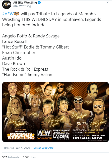 #AEW will pay Tribute to Legends of Memphis Wrestling THIS WEDNESDAY in Southaven. Legends being honored include: