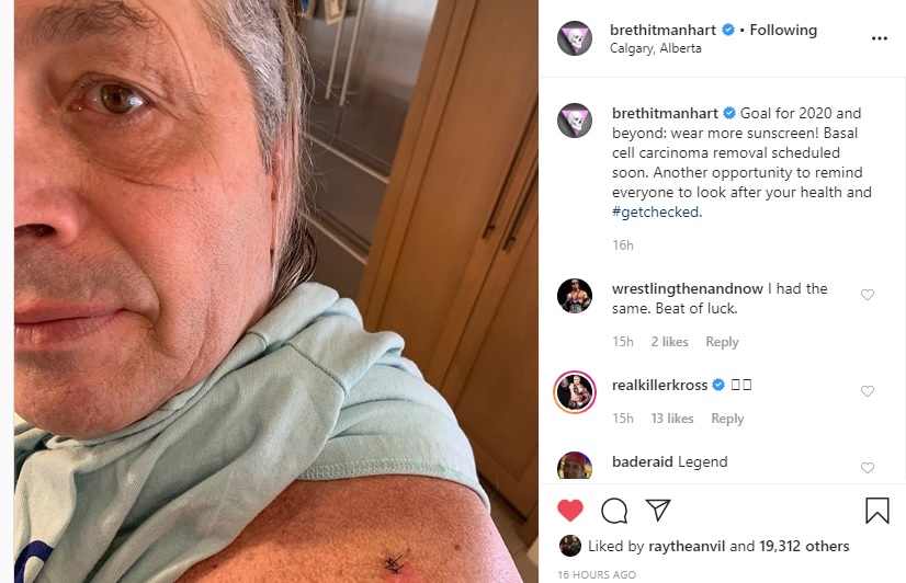 In a post to his Instagram account, WWE legend and Hall of Famer Bret “The Hitman” Hart announced he has skin cancer.