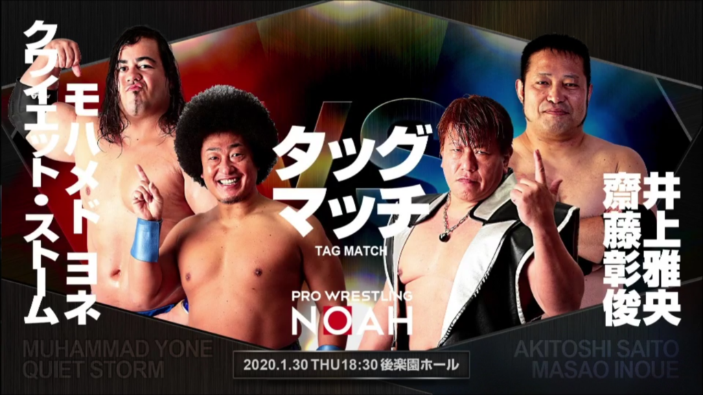 The third match of Pro Wrestling Noah’s (NOAH) Global Junior League Final had sentimental value for long time fans on the promotion. This was Quiet Storm’s farewell match with NOAH as he is moving on for the time being. Fittingly he teamed with long-term 50 Funky Powers tag team partner Mohammed Yone, who he is a 2x Global Honor Crown (GHC) Tag Team Champion with. Together they teamed against veterans Akitoshi Saito and Masao Inoue.