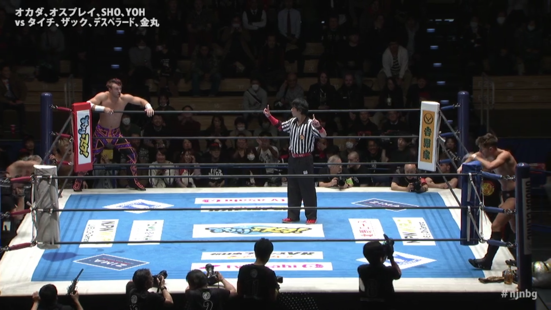 The marquee match saw the CHAOS team of IWGP Junior Heavyweight Tag Team Champions Roppongi 3K (Sho/Yoh), Will Ospreay, and Kazuchika Okada face the Suzuki-Gun team of Yoshinobu Kanemaru, El Desperado, Taichi, and RevPro Undisputed British Heavyweight Champion Zack Sabre Jr (ZSJ). meet in an elimination match, where eliminations occurred by participants being thrown over the top rope and both feet hitting the ground, or by fall (pin/submission).