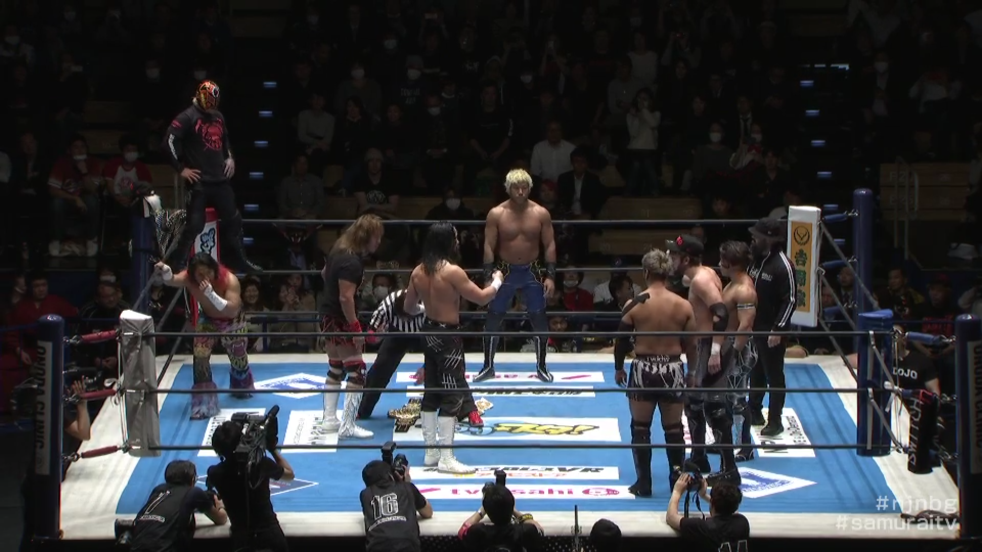 The February 5th marquee Road to the New Beginning in Osaka event saw the Los Ingobernables de Japon (LIJ) team of IWGP Heavyweight and Intercontinental ‘Double Champion’ Tetsuya Naito, IWGP Junior Heavyweight Champion Hiromu Takahashi, Sanada, and one-third of the NEVER Openweight 6 Man Tag Team Champions Bushi against the Bullet Club team of Jay White, KENTA, Taiji Ishimori, and El Phantasmo.