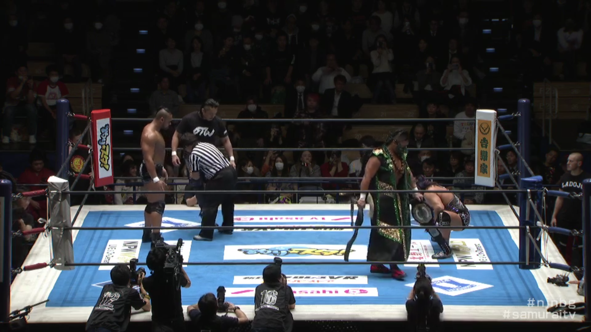 The headline match of the evening saw the Suzuki-Gun team of Taichi, El Desperado, and Yoshinobu Kanemaru defeat IWGP Junior Heavyweight Tag Team Champions Roppongi 3K (Sho/Yoh) and Kazuchika Okada. Taichi was able to pin Sho after the Suzuki-Gun team used a chair on the latter, leading to a beatdown on the IWGP Junior Heavyweight Tag Team Champions before their February 9th V1 defense against Kanemaru and Desperado. Taichi continued to taunt Okada, after stating he’d like to face the 5x former IWGP Heavyweight Champion in Sapporo when NJPW holds their July tour of Hokkaido.