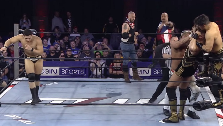 The crowd gets into the bout once things swing in CONTRA Unit’s favor as Samael and Gotch beat up El Hijo de L.A Park. The elder Park tries to get in but the ref cuts him off. Once Gotch chucks Young Park to the outside, we notice that the lumberjacks are mostly babyfaces. The only heels are there are Injustice and they’re quickly put in their place.