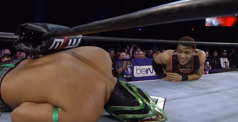 There was one moment early on when a Zenshi shooting star off the apron looked clean but the landing was a little sloppy as Laredo Kid was still on the ground outside from his dive. Other than that, the heel and tag team tactics of Injustice was the glue here.