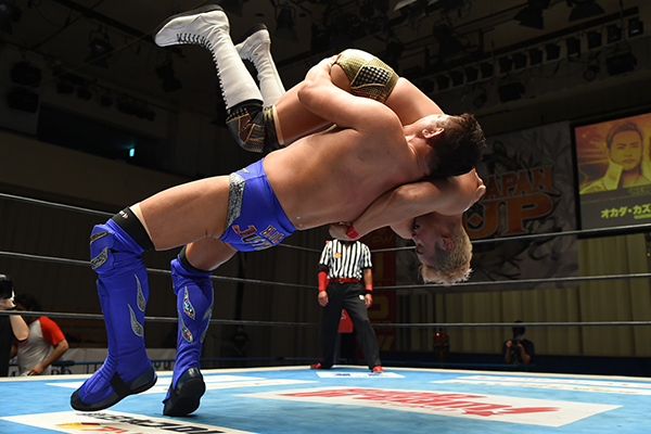 It’s the type of match where you know exactly what you’re getting, as they just run into each other and hit as hard as they could, before going for signature spots to try and finish it when possible. Just five minutes in, and Makabe already was near knocked out, showing the tone of this match. Both men delivered like usual, but after a hard fought war, Ishii would advance to the ‘Great Eight’. Tomohiro Ishii won in 13 minutes and 28 seconds with the vertical drop brainbuster. 3.5/5 (*** 1/2)