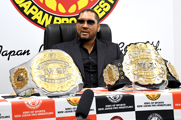 Before the press conference could begin, NJPW Chairman Naoki Sugabayashi had some things to say. First he thanked the fans who attended the Osaka Jo Hall events and followed the rules. He would then announce the new two shows, New Japan Road & Sengoku Lord, as well as their cards. On July 25th, EVIL will be defending his championships against the IWGP Junior Heavyweight Champion Hiromu Takahashi, who confronted EVIL after he beat down Naito. This is the first time in seven years that a Junior Heavyweight Champion challenged for the Heavyweight Championship.