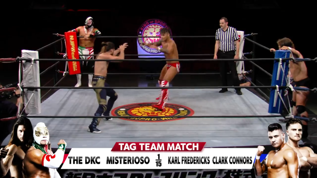 The opening match of the event saw NJoA regular Misterioso, who was making his Lion’s Break Collision debut team with The DKC against Karl Fredericks and NJPW LA Dojo Young Lion Clark Connors.