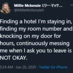 Shortly after that thread, Millie would also post a text message exchange with Travis where he found her hotel and demanded to speak with her while intoxicated, after being asked to leave multiple times.