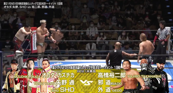 The match saw the CHAOS team of five-time IWGP Heavyweight Champion Kazuchika Okada, three-time IWGP Heavyweight Tag Team Champion Toru Yano, and current one-half of the IWGP Junior Heavyweight Tag Team Champions Sho defeat the Bullet Club team of Yujiro Takahashi, Gedo, and Jado in 12 minutes and 3 seconds.