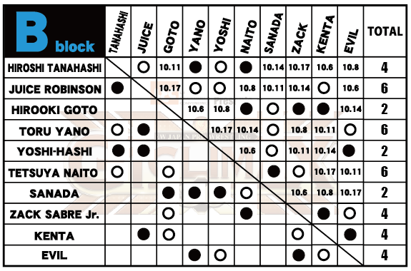 G1 Climax 30 Night 10 sees IWGP Heavyweight and IWGP Intercontinental ‘Double Champion’ and Los Ingobernables de Japon (LIJ) leader Tetsuya Naito, two-time IWGP United States Heavyweight Champion Juice Robinson, and current KOPW (presumably King of Pro Wrestling) titleholder Toru Yano battle for the top place in the bracket.