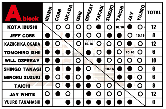 The Updated A Block Brackets Going Into G1 Climax 30 Night 17 via New Japan Pro Wrestling