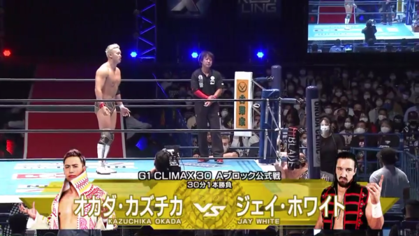 The G1 Climax Night 5 A Block marquee match was the matchup that is becoming the most intriguing rivalry within New Japan Pro Wrestling (NJPW) five-time former IWGP Heavyweight Champion, G1 Climax 22 & 24 winner, and CHAOS member “Rainmaker” Kazuchika Okada faced former IWGP Heavyweight, IWGP Intercontinental, and IWGP United States Heavyweight Champion “Switchblade” Jay White.