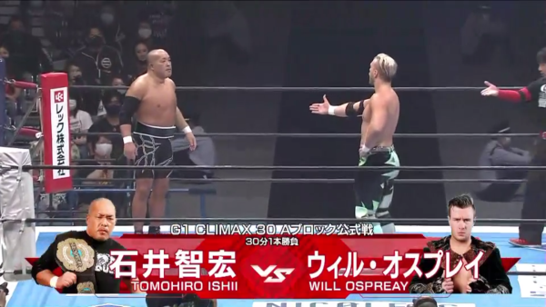Ishii needed to get on track after his G1 Climax Night 1 defeat to current NEVER Openweight Champion and Suzuki-Gun leader, Minoru Suzuki. Ospreay was able to best Bullet Club member Yujiro in a competitive match in his night one match.