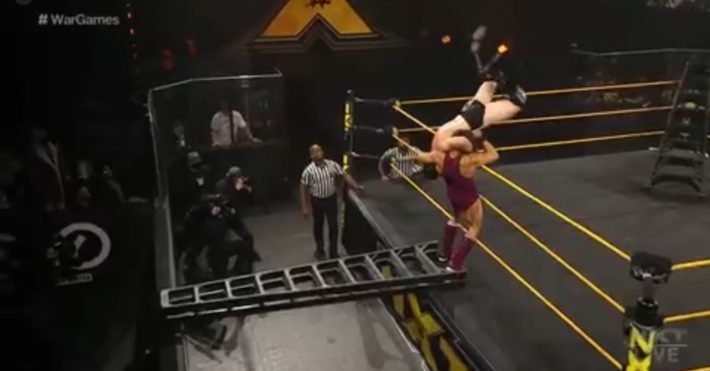 O’Reilly would start the climb, before being whacked twice with a steel chair. A Bitter End on the barricade, and O’Reilly isn’t human, because he was back. He’d tip Dunne off the ladder into another ladder, but a mystery man would run in and send O’Reilly to the floor. This means The Kings Of NXT have the edge at War Games.