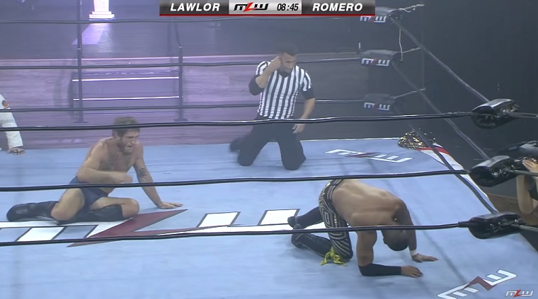 Tom Lawlor managed to defeat New Japan’s Rocky Romero in a hard-fought, almost 18-minute bout. Thanks to Romero’s chasm of experience over Lawlor, there were times when this match looked as though it could go in his favor.