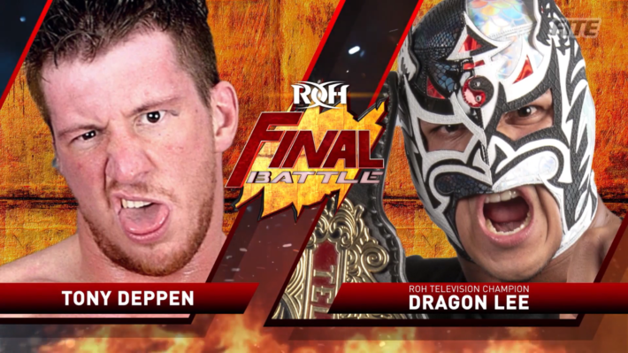 Earlier in the night, we saw an insane Four Corners Survival Match, with Tony Deppen coming out on top. They earned this match, and will now have to go to war with none other than Dragon Lee. Lee has been ROH TV Champion since Final Battle last year when he toppled Shane Taylor, but hasn’t really been tested often as champion. Deppen already went through a hard fought match, but this is Dragon Lee’s first match since February. Neither man is at full power here, and anything can happen.