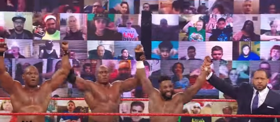 Kingston then hit a suicide leap on Benjamin, but Lashley caught Woods’ attempt and slammed him into the barricade and nailed Kingston with a clothesline.