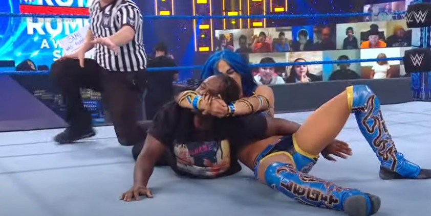 WWE Smackdown Results returned as Reginald tried to gain Banks’ favor by offering her a rose, then he removed his jacket and motioned for her to kiss him.