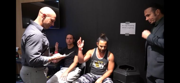 Christopher Daniels made a joke where Matt Jackson slapped his leg in laughter. After this, Matt Hardy entered and pointed to a sign that bans leg slapping when laughing. Matt from the Young Bucks then had to pay a $500 fine. This is one of the many shoots that AEW have done about WWE, and we will most likely see a lot more.