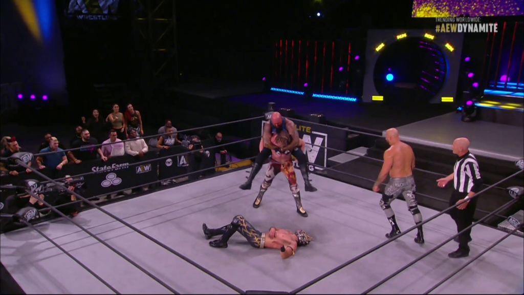 Fenix was now attacked three on one, but Penta saved his brother when a pin was attempted. Anderson sized him up for the single leg dropkick for a two count. Gallows came in, and they’d set up Magic Killer but Penta made the save. Omega tried to help out, but took a Canadian Destroyer.