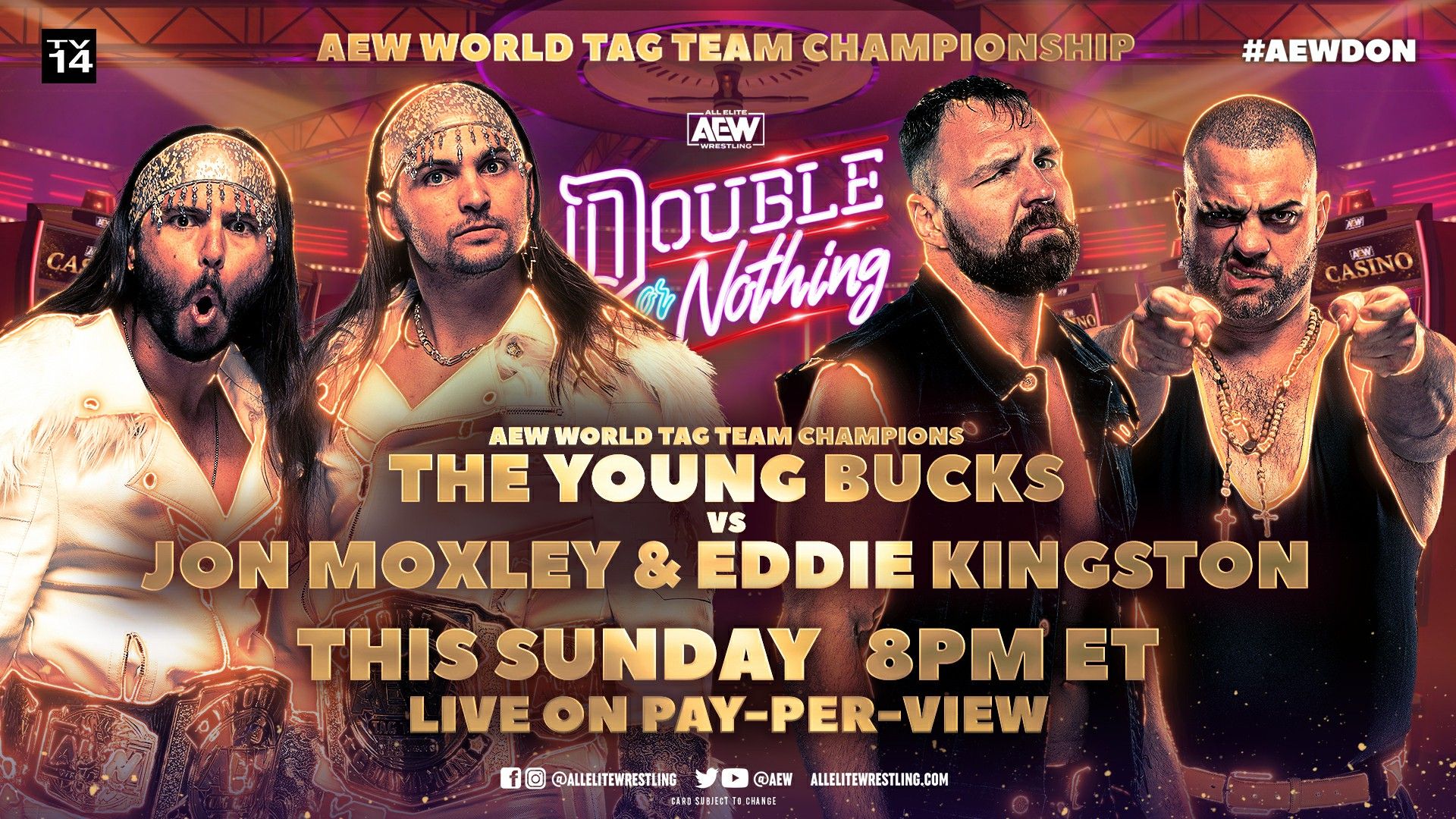 Mox went right into the Bulldog Choke, but Nick broke it up before hitting a double DDT. Karl Anderson & Doc Gallows came to ringside, but failed to make an ambush. Frankie Kazirian would even the odds and fight Anderson off, but back in the ring Matt would spray Moxley in the eyes with some cold spray before cracking him with the can before getting a two count.
