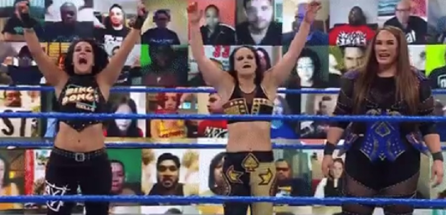 Shayna Baszler and Nia Jax helped Bayley attack Belair, and Nataly and Tamina joined in but they were overpowered as well and Baszler hit Tamina with a running knee.