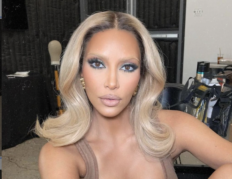 Kim shared some pictures of herself via Instagram and her fans think she looks amazing. In the picture, she rocks a black, skin-tight dress that shows of her tiny waist and big booty. Kim’s outfit hug her body and shows off her hourglass figure. The mother of four also wears her long, dark, and wavy hair down. She wears a soft glam makeup and finishes off her look with large, gold, bracelets stacked on her wrist. Kim captioned her post with a black heart emoji.