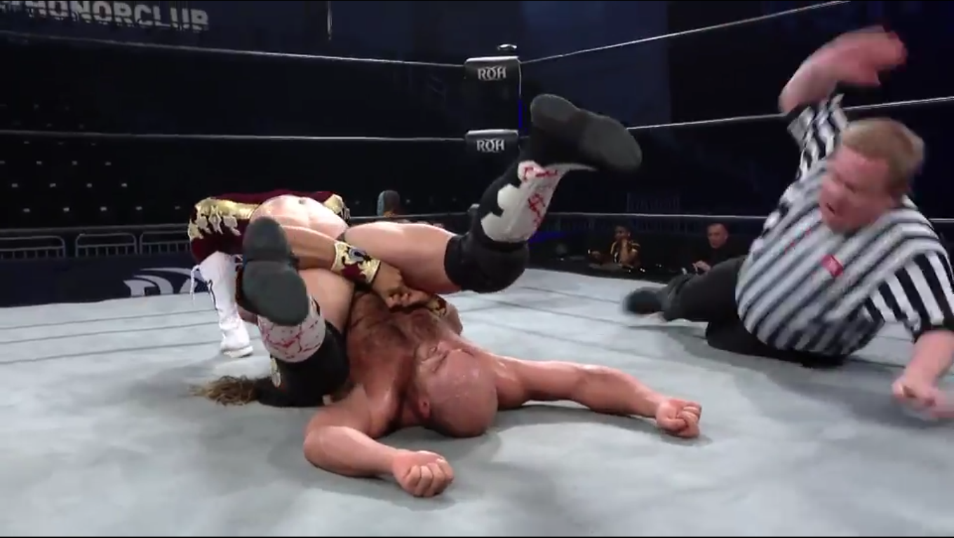 Horus was quickly getting isolated, VLNC UNLTD looking to keep the ROH World Champion out of the action. They have kept him down and unable to get momentum, King pushing down on the neck with a crank. Horus would keep trying to fight back, but was in the wrong corner and got beaten right down. Dickinson would take Bandido off the apron, before slamming Horus down for a two count.