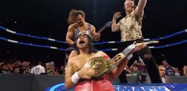 Nakamura went for a kinsasha, but Azeez caught him and hit a sidewalk slam and Crews came in and Nakamura hit him with a kick.
