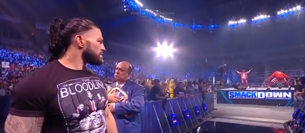 Heyman told everyone Reigns gave them permission to acknowledge him, and then to acknowledge the undisputed Smackdown Tag Team Champions, the Usos.