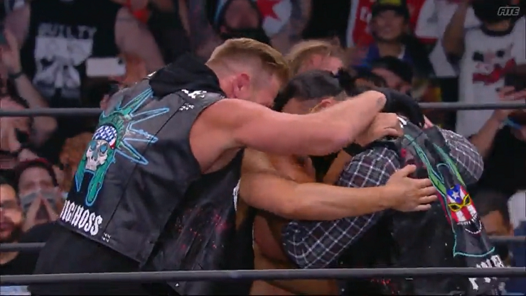 Jericho set up a hurricanrana on the top rope, hitting ten punches before MJF countered into a spinebuster. MJF would look for a superplex, only to be sent off to the mat and hit with a Codebreaker for a two count. Wardlow would hit the ringside area, with Jake Hager there to stop him. MJF used this brawl to use the bat of Jericho to smack him in the face, and hit a Judas Effect for a three count.