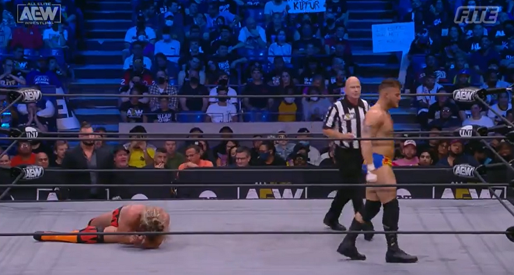 A very simple face vs. heel match, with both men playing their roles well. MJF is high above Pillman in terms of skill, but Pillman held his own. They stuck to a very fundamental style of match, very much a cool down after Omega vs. Danielson and a fiery CM Punk promo. Match Rating: 3/5 (***)