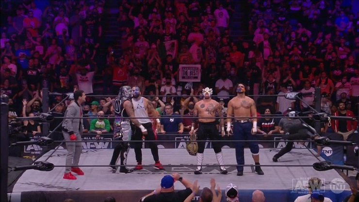 Last week on Rampage, The Lucha Bros were able to successfully defend the AEW World Tag Team Championships against Butcher & The Blade. After the bell, they’d be attacked by Private Party – another team under the banner of the Hardy Family Office. Santana & Ortiz would save The Lucha Bros, and now we have a massive eight man tag team match for this week.