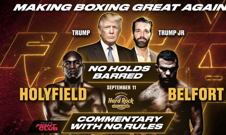 Just when you thought the world of novelty boxing couldn’t get any weirder, former US President Donald Trump is set to serve as “unfiltered boxing commentary” for the Holyfield vs Belfort boxing match.