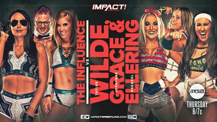 The Influence (Madison Rayne, Tenille Dashwood, Kaleb with a K) vs. Taylor Wilde, Jordynne Grace, Rachael Ellering