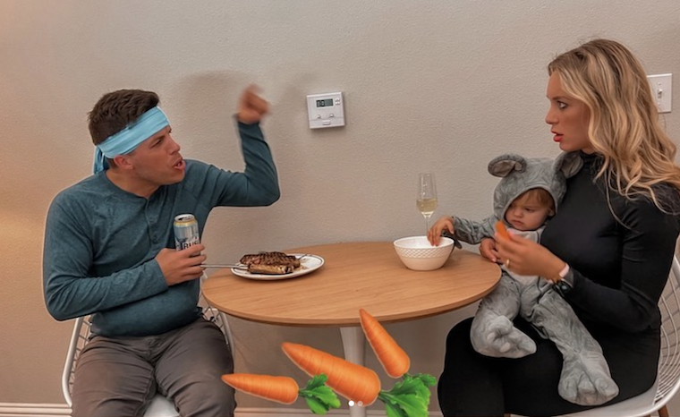 Jovi and Yara’s hilarious Halloween celebration didn’t with a picture. They re-imagined one of Mike and Natalie’s bad dinner dates in a short video. The scene shows Yara’s vegetarian Natalie munching on carrots and criticized Jovi’s character, Mike for eating steak.