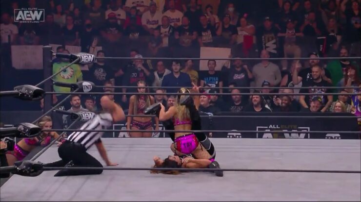 Jay would tag in, and Jaime Hayter would pull her outside for a three on one attack. Rebel would shut down any plans of a tag and try to hit a suplex, and on a second attempt got it. This is shocking, perhaps the first time we’ve ever seen her hit a wrestling move in AEW. Hayter would tag in and keep things steady, clearly the more skilled of Baker’s Goon Squad.
