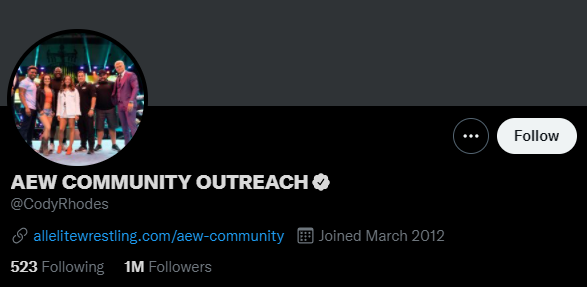 “I know some folks are upset that I deactivated my Twitter – but I don’t intend to let a million plus followers just go away. So I’m really happy to give away my followers to and transition/reactivate the handle to the AEW Community Outreach Team! As seen already, it’s a wonderful group who aims to do something in every market – whether the cameras are on or off, no matter how big or small. Just good people doing good things for each other.”