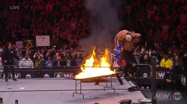 This was still not enough for a three count, so Andrade grabbed a table, and Rhodes went through it after a hip toss. Another table entered the ring, and Andrade put Rhodes on top of it. Rhodes would block the dive, and drove Andrade through with a powerbomb after Brandi Rhodes returned to light a table on FIRE! Andrade missed the fire off the reverse superplex, and Rhodes took the burn, but still got the win.