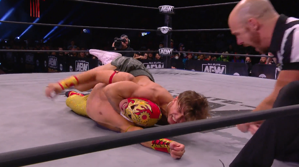 Cole shot back with a pump kick, before the Ushigoroshi. Yuta rolled outside and got some aid as Orange Cassidy stared daggers at Cole. He’d avoid Panama Sunrise, and get a big crossbody off the top rope. A diving elbow strike would follow this, before getting a bridging German Suplex.