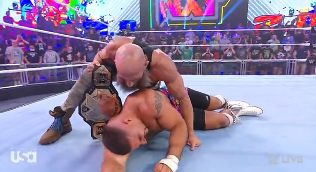 Strong was not intimidated when faced with Bron, going right for a single leg and being thrown off. Bron went for a takedown, and Strong would stop it like a pro. Strong took the leg and tripped Bron up, getting a front headlock. Carmelo Hayes & Trick Williams were watching on, happy as Bron rolled Strong into a delayed vertical suplex.