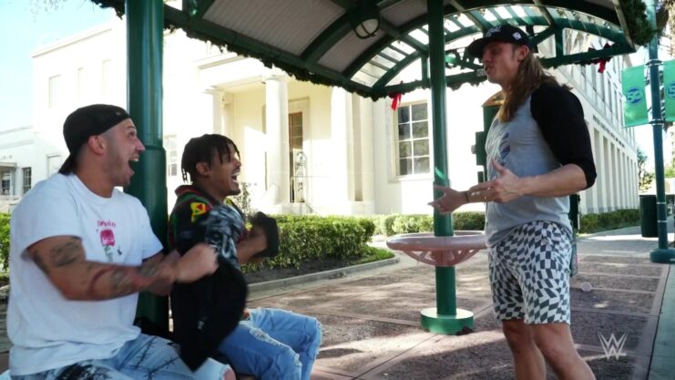 MSK & Riddle would be here once again, now with scooters. A scooter is like a journey to the destination. Wes Lee & Nash Carter are ready to show the teachings of Riddle in the ring, and they got some RK-Bro merch. Next week, they’re gonna call out Imperium – and Riddle is gonna be there to help… or is he.