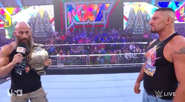He’s doing great, but he might not be ready for bright lights, gold, and the responsibilities of being champion. But on January 4th, he intends to take the belt home to his dad and family, and be praised for his efforts. However reality will hit, and that reality is the greatest NXT Champion of all time – Tommaso Ciampa. Having heard enough, Ciampa would get lifted up by Breakker, and let down gently before a threat would come from Breakker – all the mind games of Ciampa didn’t work.