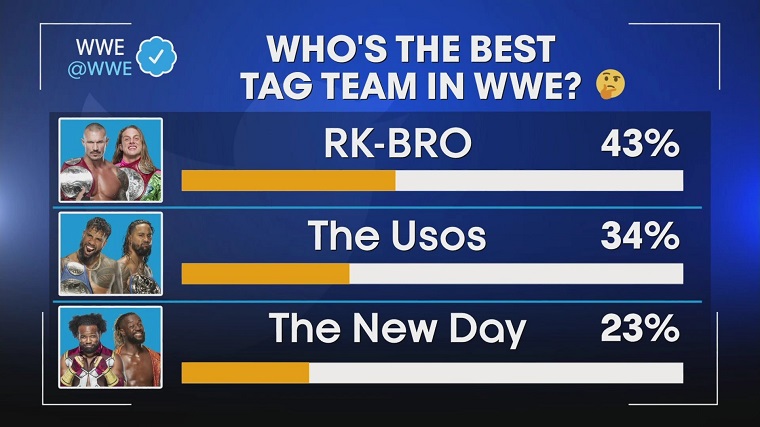 Riddle hammered Woods with some forearms, and then Riddle hit a pair of knees but Jey Uso blind tagged in on Woods and sent Riddle and Orton to the floor.