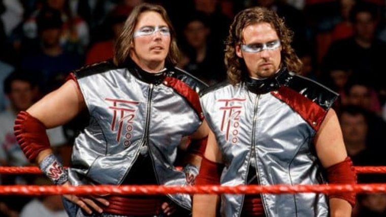 Once WWE got their hands on them in 1995, they were renamed Troy and Travis respectively and given the team name “Tekno Team 2000”. I don’t know why they were called Troy and Travis with no last name or even if really mattered if they had names at all. Even WWE shaded their own creation: