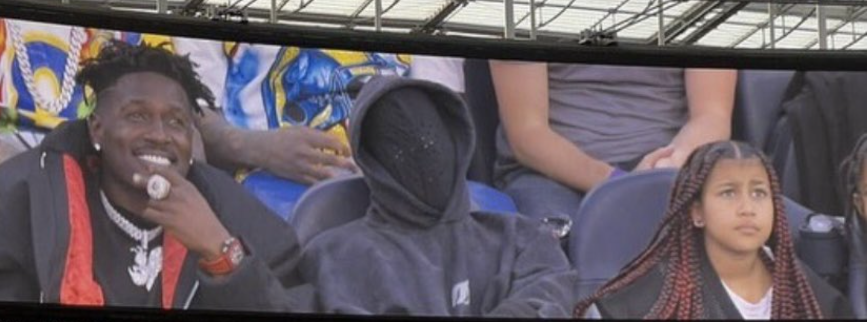 And this sentiment was expressed when the cameras focused on Kanye. In the post here, we can see that Kanye was watching the game with his iconic black mask that he has now become synonymous with.