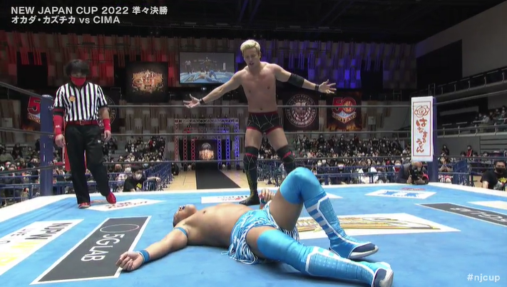 Kazuchika Okada is hard to defeat in 2022, and has made it all the way to the quarter finals of the New Japan Cup. However, now he’s got to face an unknown element in GLEAT’s own CIMA. CIMA has been around for years, and much like Okada got his start in Ultimo Dragon’s dojo – but they’ve never met in singles action before this night. Okada hasn’t had a chance to share the ring with CIMA on this tour at all – and that could be all CIMA needs to get the upset win tonight.